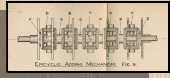 The images in this section are for the technically minded. Their presentation here was triggered by the writing on the back of the first of the Brough Park photographs in the previous section. It makes reference to the Storage Screws. As I am interested in the analogies between these early totalisators and computer systems, I find the Storage Screws fascinating because they are analogous to buffer memories. It is clearly evident from other images in the Photo Gallery that these storage screw buffer memories permeated throughout the early Julius Totes. George Julius presented a paper to the Institution of Engineers Australia (IEAust) in 1920 describing these systems, when a machine that had been built and tested capable of supporting 1,000 terminals and a sell rate of 250,000 bets per minute was demonstrated. This image is FIG 10 from that paper. George was one of the major founders of IEAust. |
