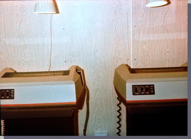 The fact that the systems were mobile combined with air conditioning that did not cope well during hot periods, resulted in no piece of equipment escaping failure on multiple occasions. There was always something in need of repair. I think the most reliable pieces of equipment were the KSR43 Teletypes. These are visible in the photo above labeled The PDP11 tote Console Terminals. When thinking of reliability an often overlooked piece of equipment is the test equipment. Our Tektronix 465 Oscilloscopes purchased in 1978 are still our prime piece of test equipment today 11 February 1998.